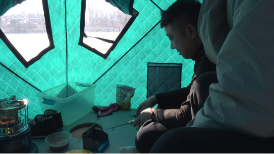 另一边,通榆县嘉禧乐园湖面上,首届冰钓比赛鸣哨开赛。多位来自全省的冰钓爱好者齐聚冰湖,以渔会友、畅享冰雪乐趣。随着开赛哨声响起,选手们迅速投入角逐,打冰眼、下鱼竿、搭帐篷,一系列动作娴熟利落。短短十几分钟,色彩鲜艳的垂钓帐篷在白茫茫的冰面上依次排开,构成冬日里一道亮丽的风景线。寒风凛冽丝毫未减选手热情,大家凝神静气紧盯鱼漂,时而轻提鱼竿试探,时而静待鱼讯,静谧中透着紧张的竞技感。