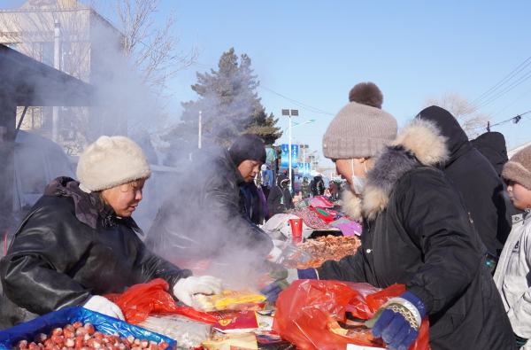 春节脚步日渐临近,白城大地寒意未消,镇赉县莫莫格蒙古族乡的新春大集已热闹开锣、暖意融融。作为“中国白鹤之乡”,莫莫格的湿地生态优势正顺着年集的人流扩散,每月逢九开集的传统市集,因新春置办年货的热潮更添红火气象:红彤彤的春联福字映红乡亲笑脸,镇赉弱碱大米、冬捕野生鱼、黏豆包等传统年货摆满货台,远近闻名的“苏克马”小米摊位热气腾腾,大锅翻滚的米粥香气四溢,弱碱杂粮、特色花生等“新农货”扎堆亮相,此起彼伏的吆喝声、讨价还价声与孩童的欢笑声交织回荡,浓浓的年味在市集间流淌。这场浸润着湿地生态气息的新春大集,不仅是乡亲们囤积年礼、游子寄托乡愁的暖心聚集地,更成为镇赉县盐碱地变身丰收田、生态赋能农民致富的生动缩影,勾勒出一幅年味浓郁、产业兴旺、人心向上的乡村发展画卷。