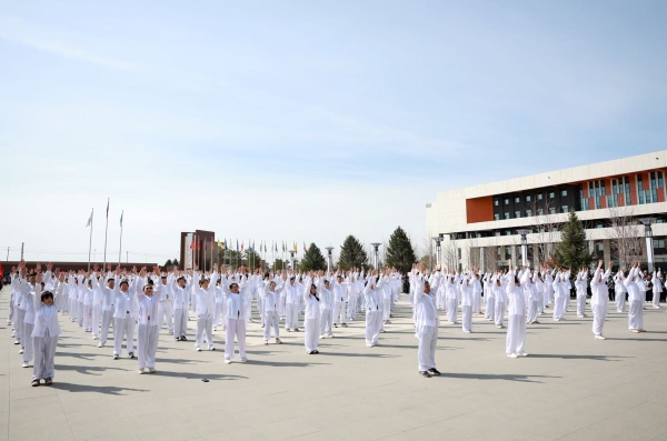 起落屈伸之间蕴藏养生智慧,呼吸吐纳之间尽展杏林风采。千名师生共同演绎的八段锦集体展演气势恢宏,动作圆活连贯,气韵绵长内敛,既展现了传统养生文化的独特魅力,也彰显了白医师生朝气蓬勃的精神风貌。