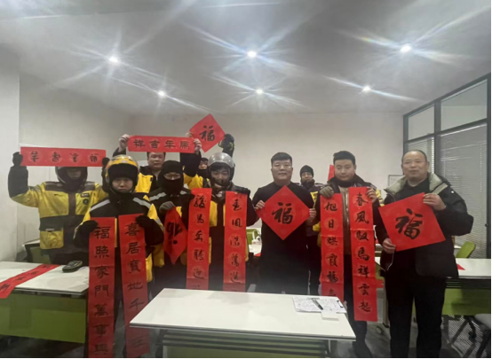 笔墨传情,春联送福添年味。1月27日至28日,县委社会工作部牵头统筹,联合县总工会、县红十字会、县楹联艺术家协会,先后走进美团站点、树满街道树满社区,开展为期两天的新春送春联活动。大红宣纸整齐铺展,墨香袅袅间,书法家们凝神挥毫,楷书端庄大气、行书飘逸灵动,专为新就业群体量身定制的“手叩千家传喜讯,足蹬万户送温馨”等佳作跃然纸上,字字凝结着对城市“奔跑者”辛勤付出的敬意,句句承载着新春佳节的美好祝福。300余副春联通过现场领取、志愿者街头发放、网点集中派送等多元方式,实现服务无死角覆盖,让传统文化的温度浸润每一位新就业群体的心田。
