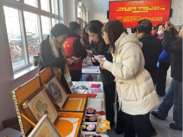 文化体验区:非遗布贴花传承人也把技艺搬上大集,一张红纸、一块花布、一把剪刀,剪出雷锋形象,也剪出了志愿精神的传承。